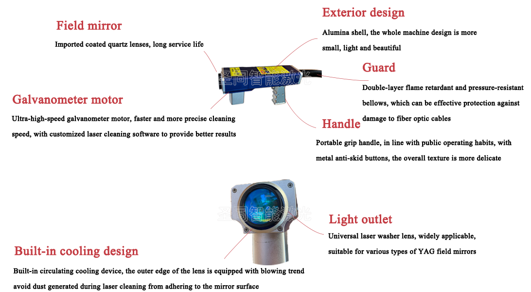 The multi-disciplinary team of highly educated and high-quality talents has developed a special light source for laser cleaning, personalized design for different cleaning objects, and has a variety of key components of laser cleaning equipment with completely independent intellectual property rights. Among them, the laser cleaning gun head is independently developed, with different weights and 8 waveforms to choose from. While ensuring efficiency and cleaning quality, it takes into account portability, flexibility, environmental protection and powerful functions.